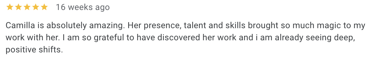 Camilla’s work is informed not just by extensive and advanced training, but by lived experience. As she navigated her own emotional and relational challenges, she found these modalities to be profoundly healing, catalysing a life shift that gave her the capacity to support others on their most meaningful inner work.