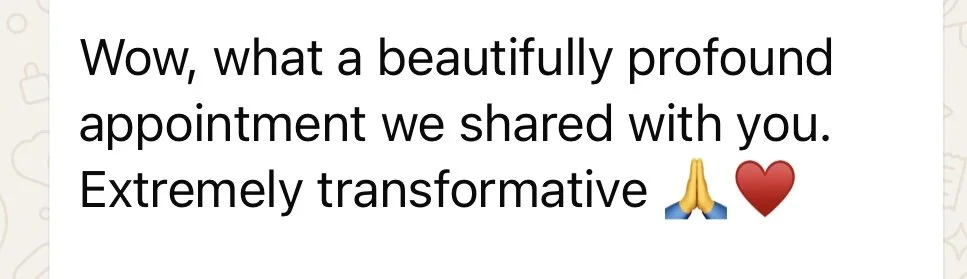 Online sessions work beautifully for both individuals and couples. In one-on-one work, clients often describe feeling exactly where they need to be emotionally and energetically, even though the connection is through a screen. The nervous system does not need a physical room to soften, release, or reorganise old patterns. What it needs is felt safety, attunement, and guidance - and that can absolutely be held with care online.